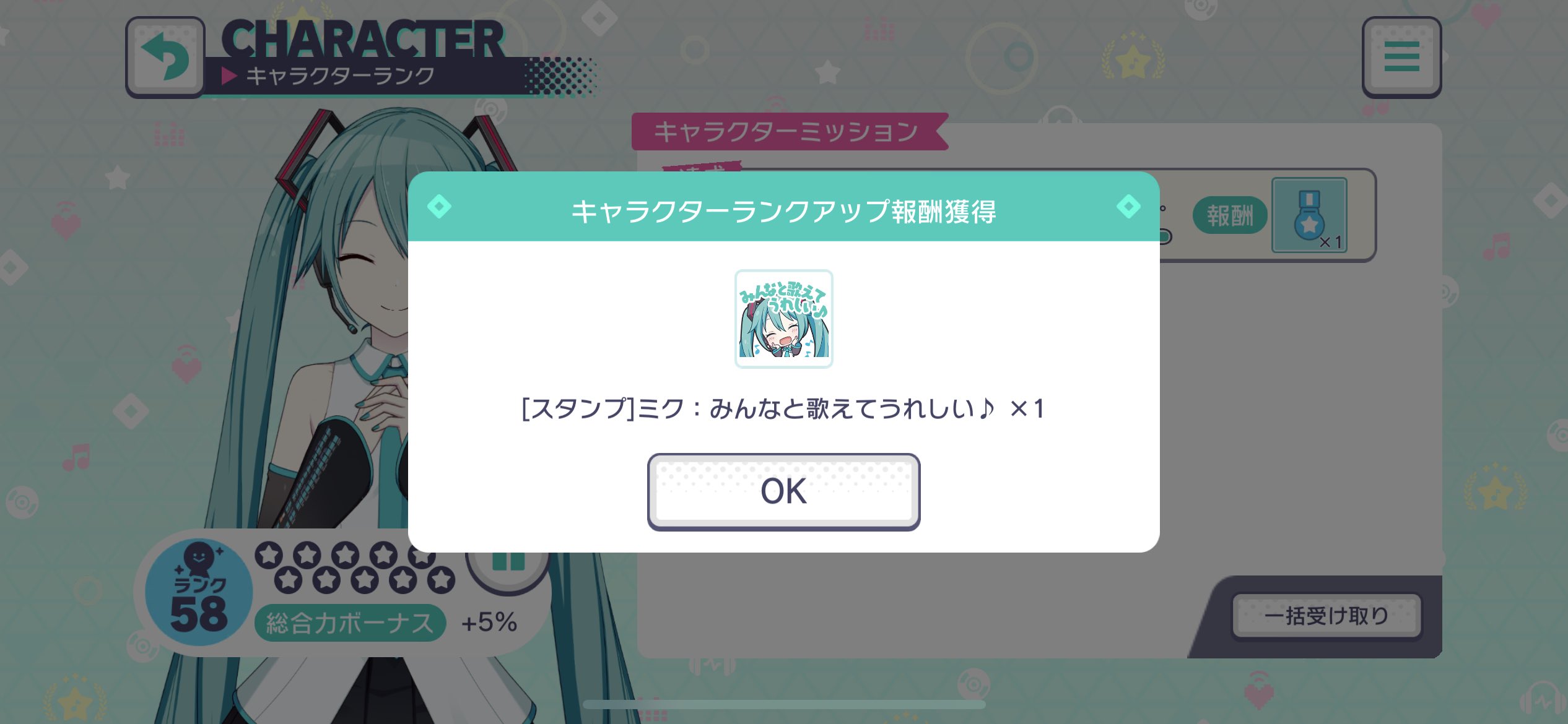 初音ミク キャラクターランク 58 到達