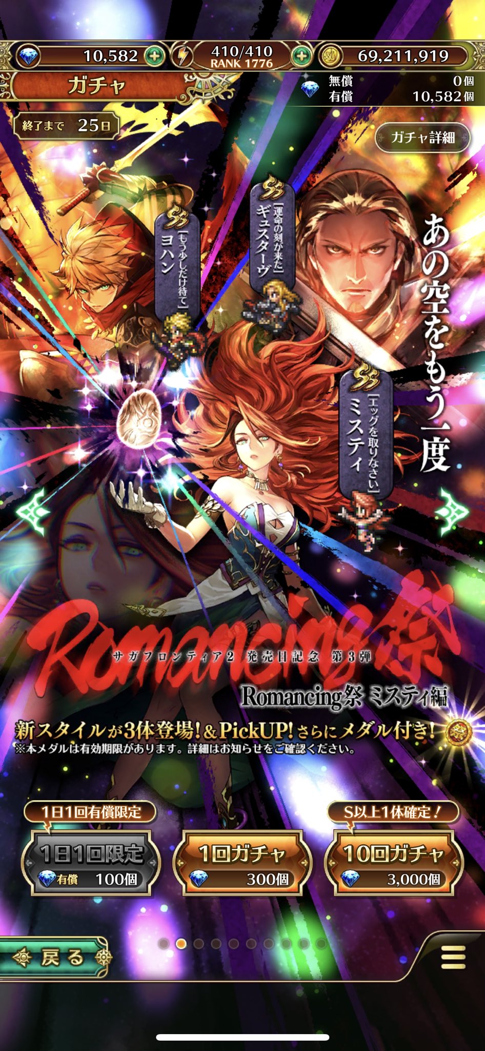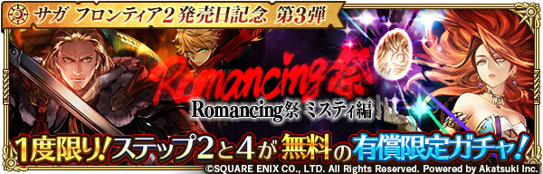 「1度限り!ステップ2と4が無料の有償限定ガチャ!サガ フロンティア2発売日記念 第3弾 Romancing祭 ミスティ編」開催✨