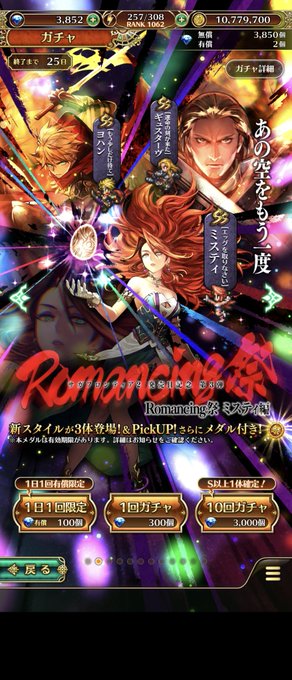 「1度限り!ステップ2と4が無料の有償限定ガチャ!サガ フロンティア2発売日記念 第3弾 Romancing祭 ミスティ編」開催✨