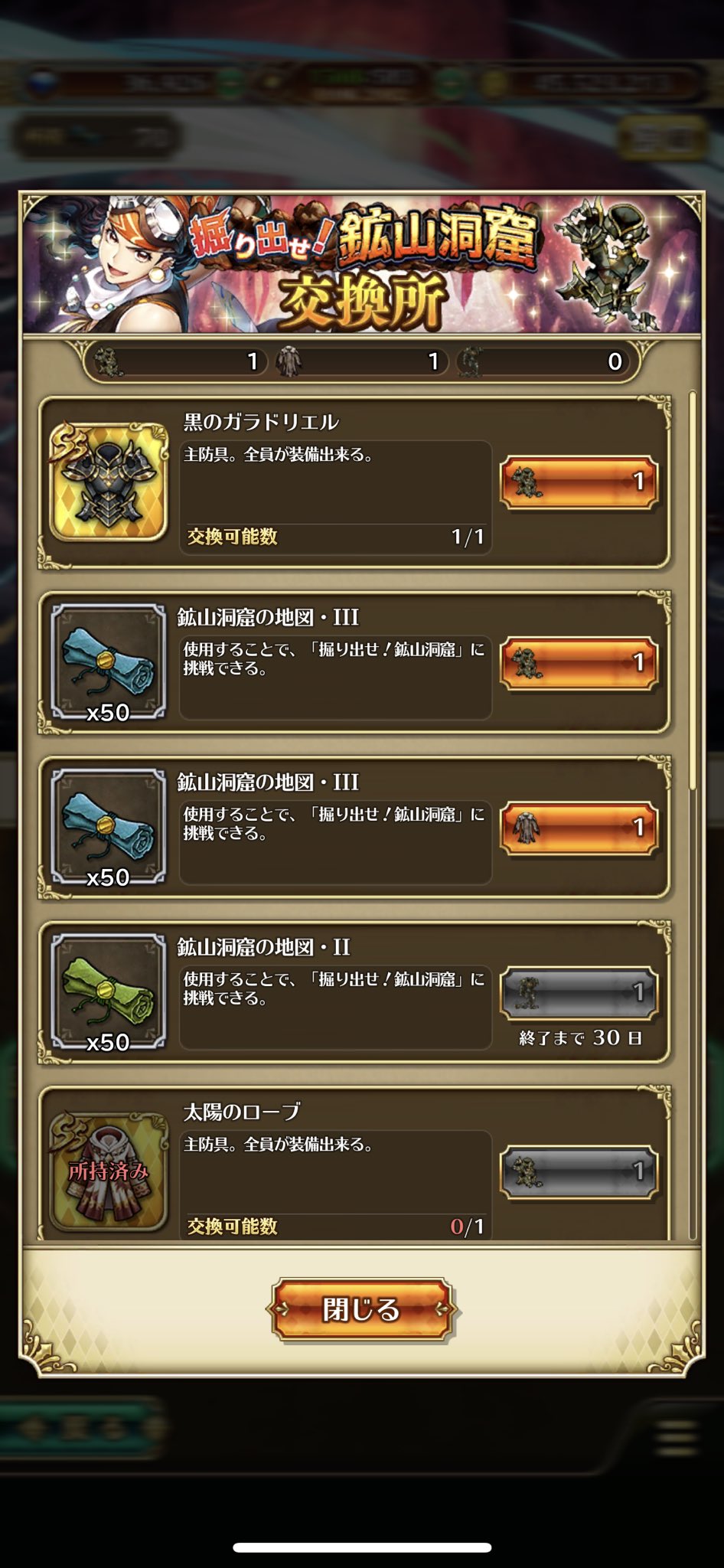 アイテムを集めて、イベント限定交換所でSS主防具「魔性のローブ」などと交換しよう!
