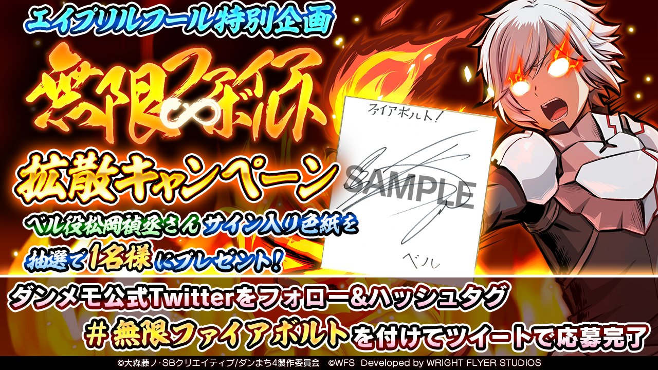 吼えろベル・クラネル!アプリ『ダンまち メモリア・フレーゼ』で新機能「無限ファイアボルト」が実装!? weekly.ascii.jp/elem/000/004/0… #danmachi #ダンメモ #エイプリルフール