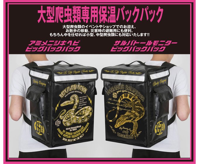 サルバトールモニターBIGバックパック、そしてアミメニシキヘビBIGバックパックの2種類が完成いたしました!本日よりオフィシャルサイトにて発売開始です!!