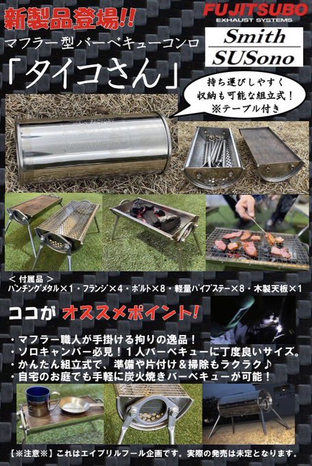 マフラー型バーベキューコンロ「タイコさん」が新登場!ソロキャンパー必見のキャンプ用品です。
