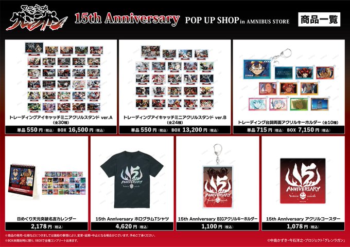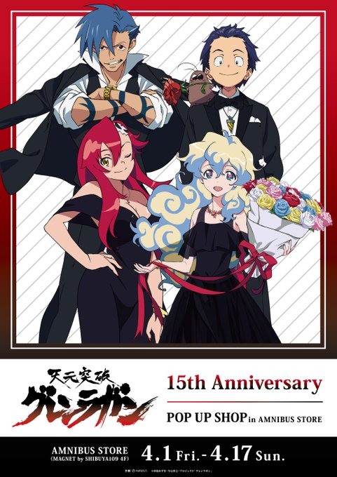 #グレンラガン15周年 を記念したポップアップショップがMAGNET by SHIBUYA109にて開催中!新規描き下ろしイラストを使用したオリジナルグッズや、15周年記念商品も盛りだくさん!是非お越しください。