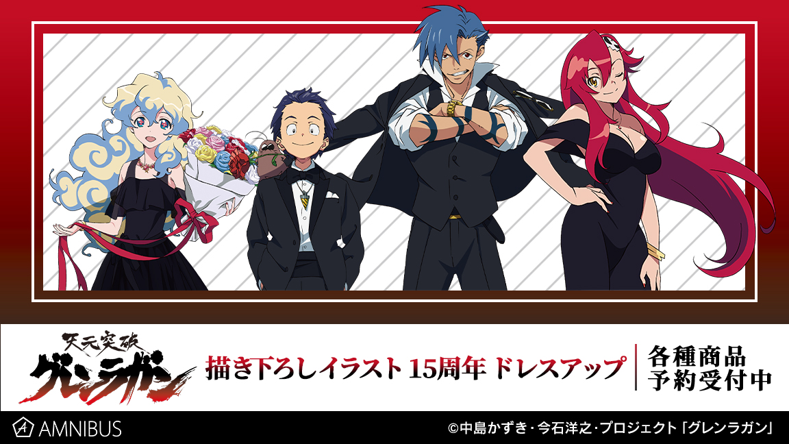 【予約開始】TVアニメ『天元突破グレンラガン』より「描き下ろしイラスト 15周年 ドレスアップ トレーディングアクリルスタンド」などの予約受付を開始しました!AMNIBUS限定特典もございます!この機会にぜひご予約ください!