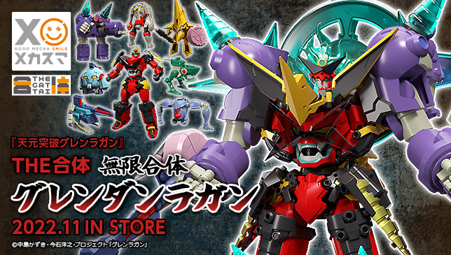 大グレン団のガンメンたちが驚異の9体合体!玩具オリジナルの完成品合体トイ「THE合体 無限合体 グレンダンラガン」が登場!合体状態でもグレンラガンの関節可動を活かしたアクションが可能!