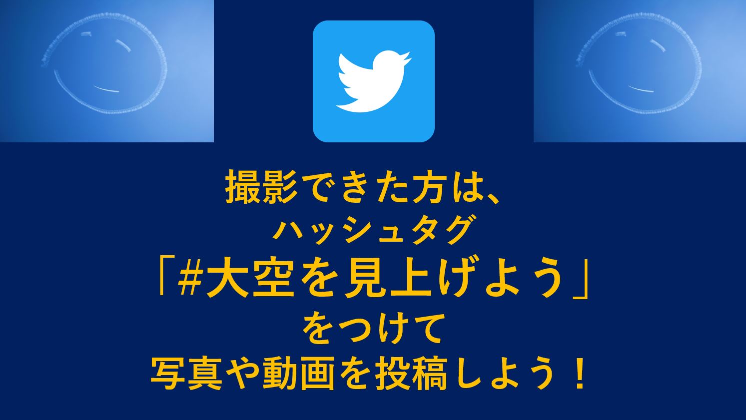 ニコちゃんマークが見えた・撮影できた方はぜひ #大空を見上げよう のハッシュタグをつけてツイッターに投稿してください~