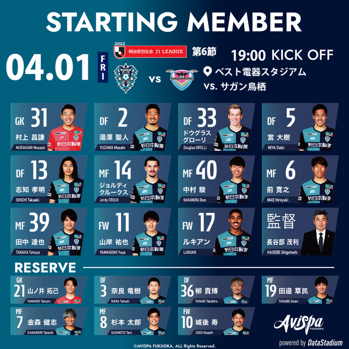 #アビスパ福岡 #avispa #startingnow pic.twitter.com/5LIOSPe873