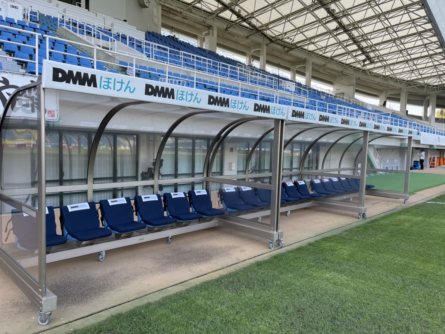 プレミアム・ユニフォーム・パートナー(鎖骨)の #DMMほけん 様よりホームゲームのベンチと、特別観覧席に設置するクッションシートを贈呈いただきました。心より感謝申し上げます