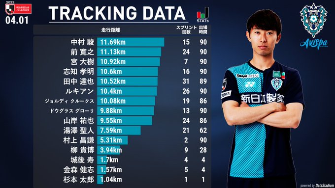 トップの走行距離を記録したのは #中村駿 選手‼️👏
