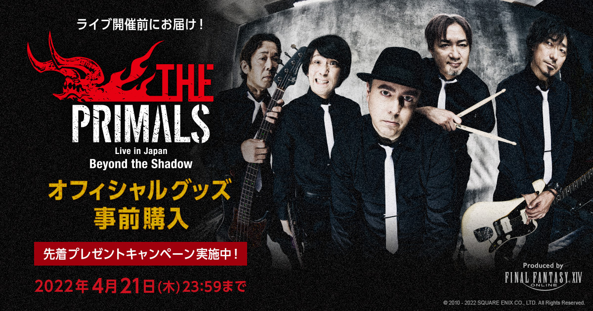 『THE PRIMALS Live in Japan - Beyond the Shadow』オフィシャルグッズの事前購入受付を開始!4月21日(木)23:59までの期間中に対象商品を4,500円(税込)以上ご購入いただいた方に「THE PRIMALS」特製ビニールバッグを先着でプレゼントいたします。#FF14 #PRIMALS