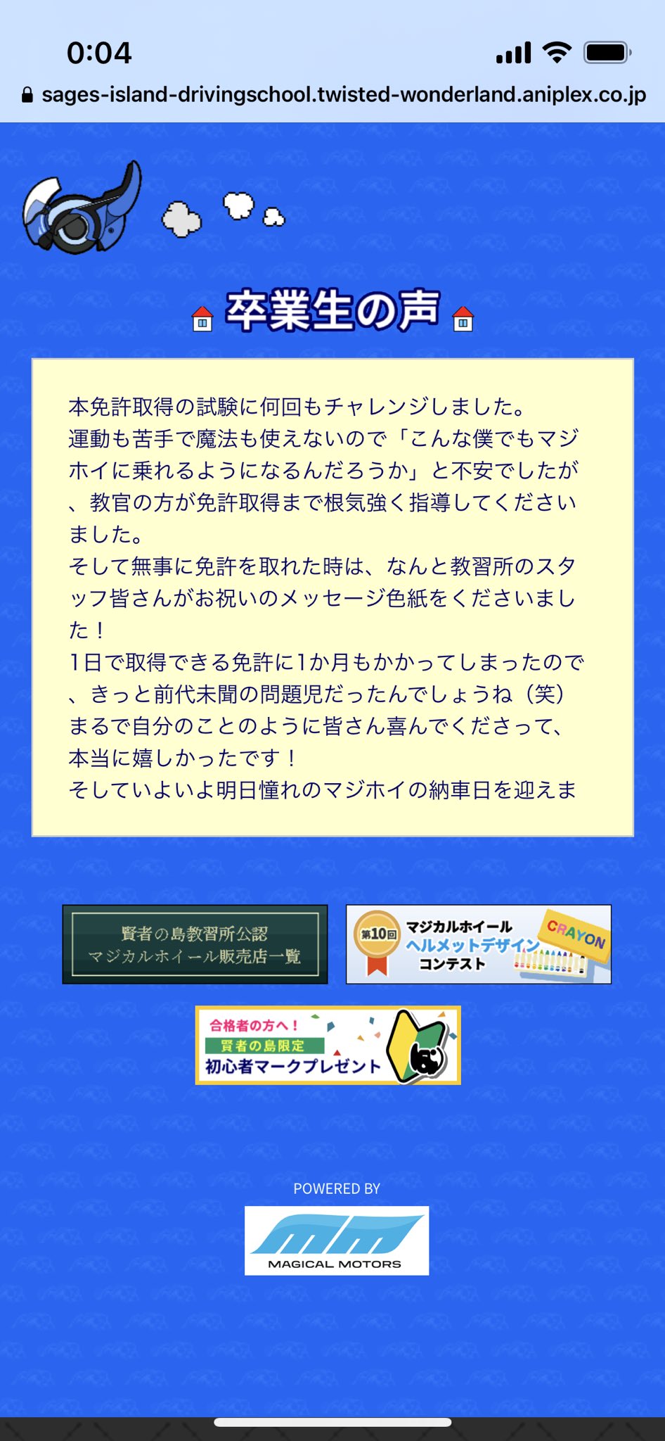 マジカルホイールの免許取得を応援する『賢者の島教習所』で春の入学キャンペーン実施中!
