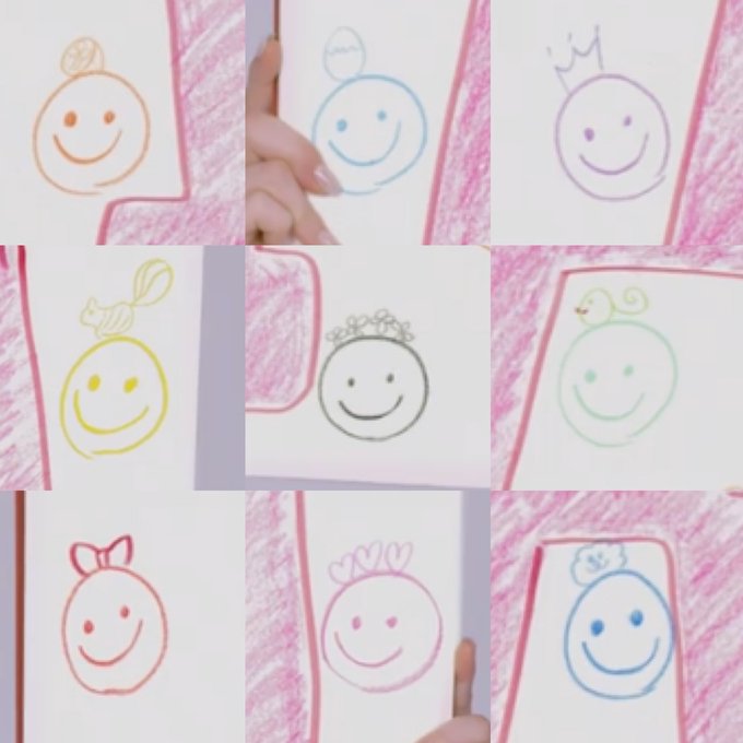 今更ながら、マコちゃんの「A」を見てたら、9人のメンカラで、9人それぞれのニコちゃんマークを描いてて、感動した😭🧡(白はなかったからアヤカちゃんは黒で書いた?)