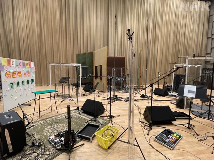 NHKが誇るひろ~いスタジオから生放送!楽器もスタンバイしていますよ~~!! #セブンメンサムライ #nhkらじらー