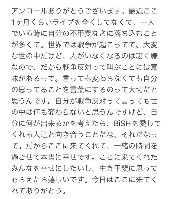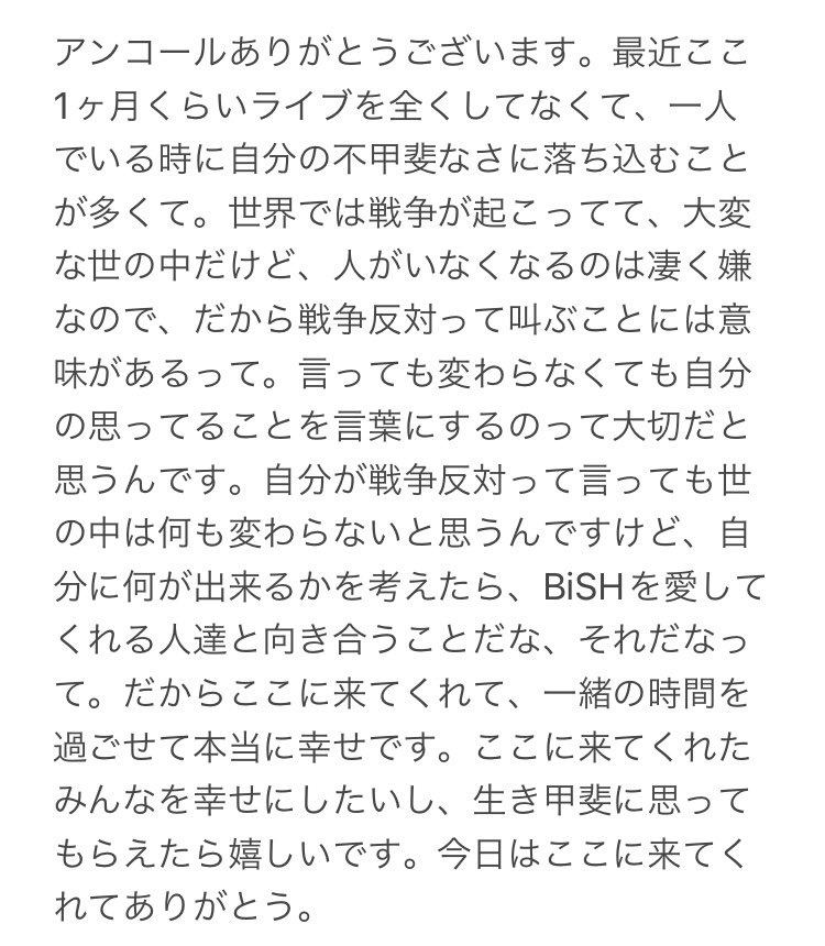 私はBiSHに出会って人生幸せだなってライブの度にBiSHの声を聞くたびにBiSHのメンバーを見た時に本当に思うよ。