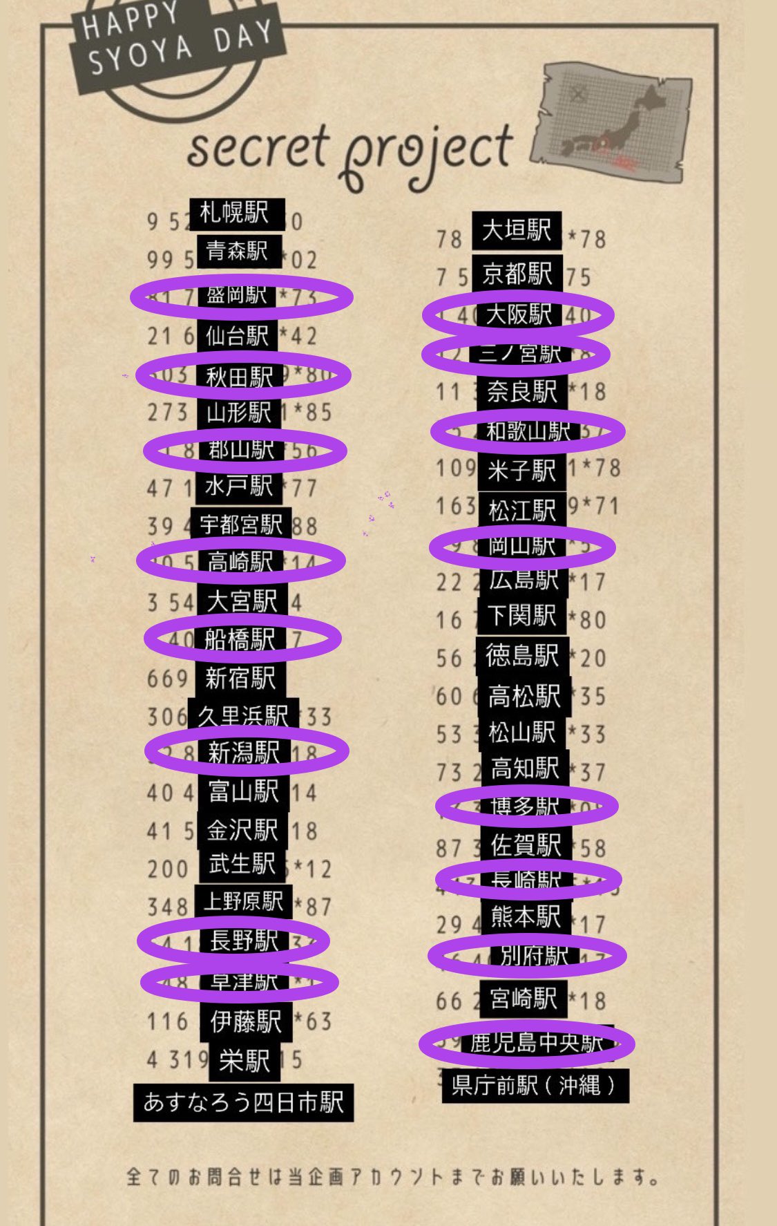 今現在で30ヶ所投稿されています💜 四国はあさって6日から掲示のようです。駅員さんへの問い合わせは業務のお邪魔になりますので控えましょうね。