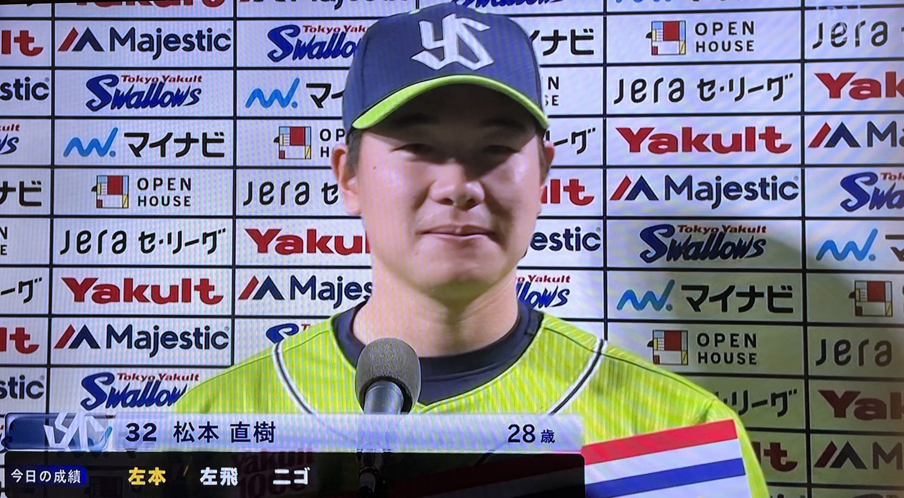 松本直樹くんは大学時代レギュラーではなく、通算20打数ノーヒットでも、社会人からプロ入りして「長打がでればいいなあと思って打席に入った」という自信をつけて自分のホームランと冴えたリードで勝つ、というのをやってのけた姿は現役学生にも何かを感じてほしい夢と努力よね。#swallows pic.twitter.com/jPB9rkRDpK