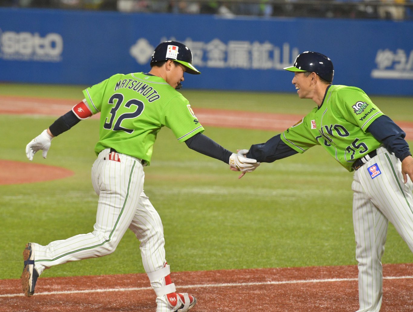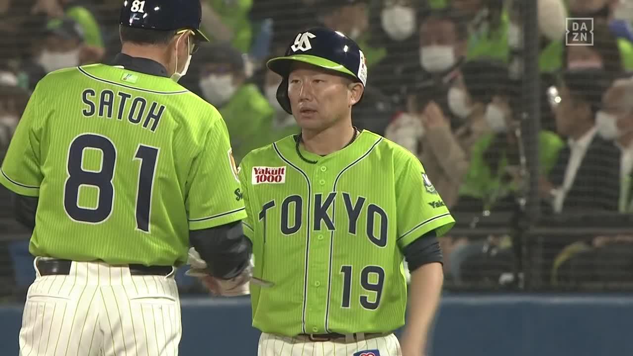 ホームラン⚾️で、三塁をまわるまっちゃんとりょうすけコーチさん☺️ #swallows pic.twitter.com/0pWjo77UUu