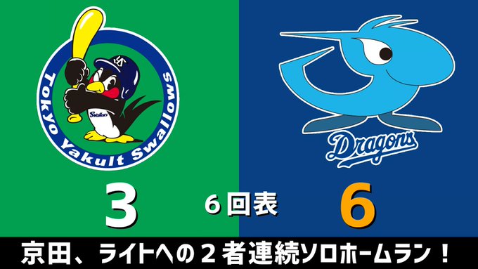 6回表 京田、ライトへの2者連続ソロホームラン!