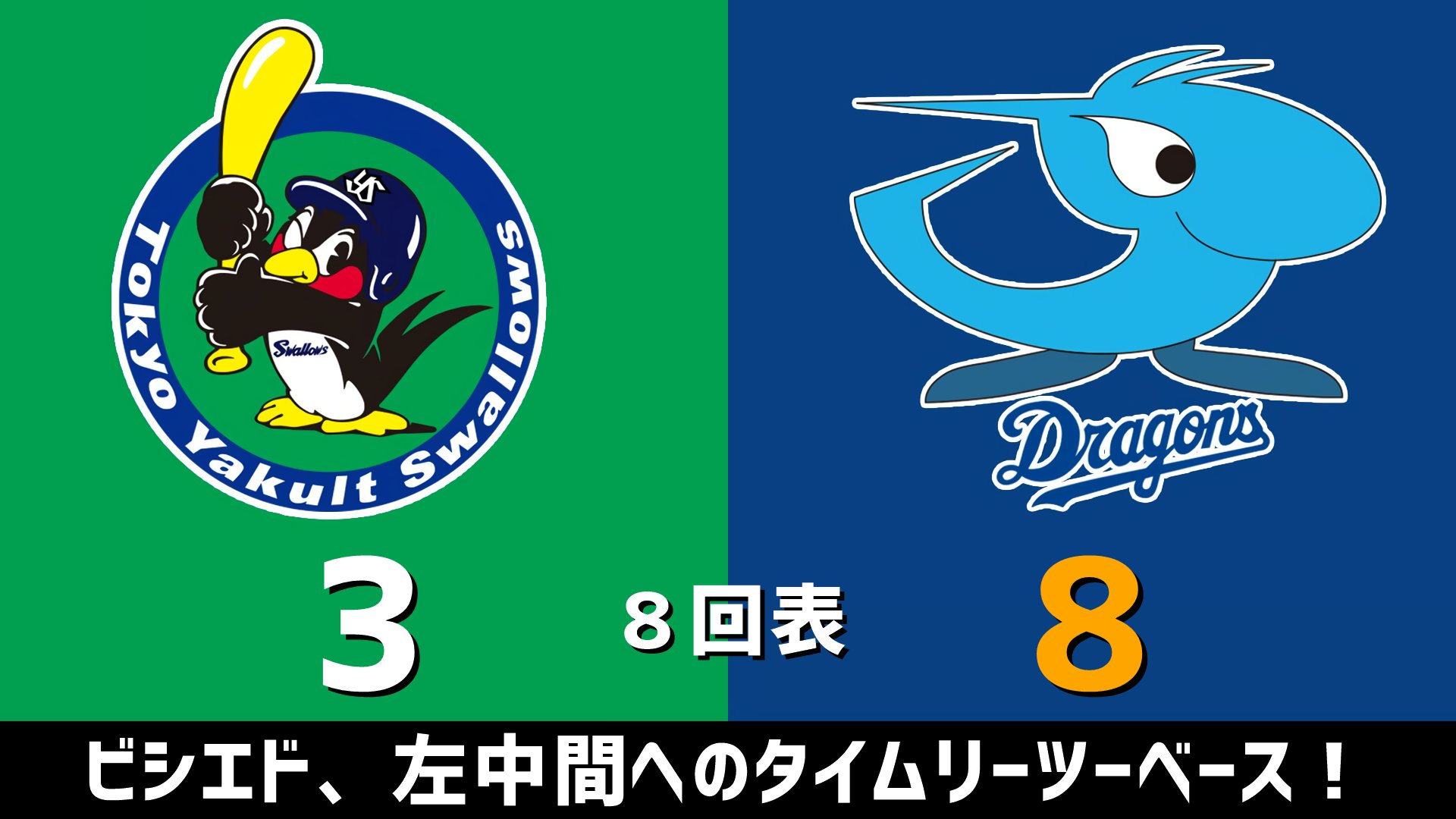 8回表 ビシエド、左中間へのタイムリーツーベース!