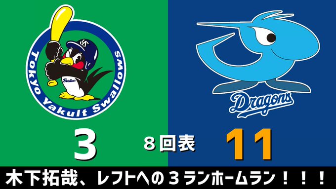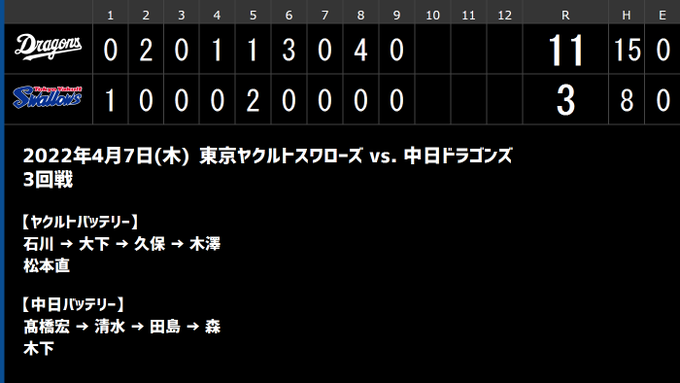 最終スコア【ヤクルト 3-11 中日】