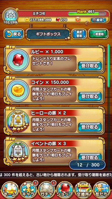 最近のルビー配布と今日の1000プレゼントのおかげです。