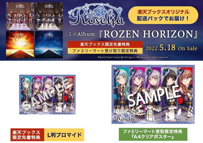 5/18(水)リリース、Roselia ミニAlbum「ROZEN HORIZON」初回生産分限定封入特典のカード画像、そして法人別特典画像を公開🌹✨