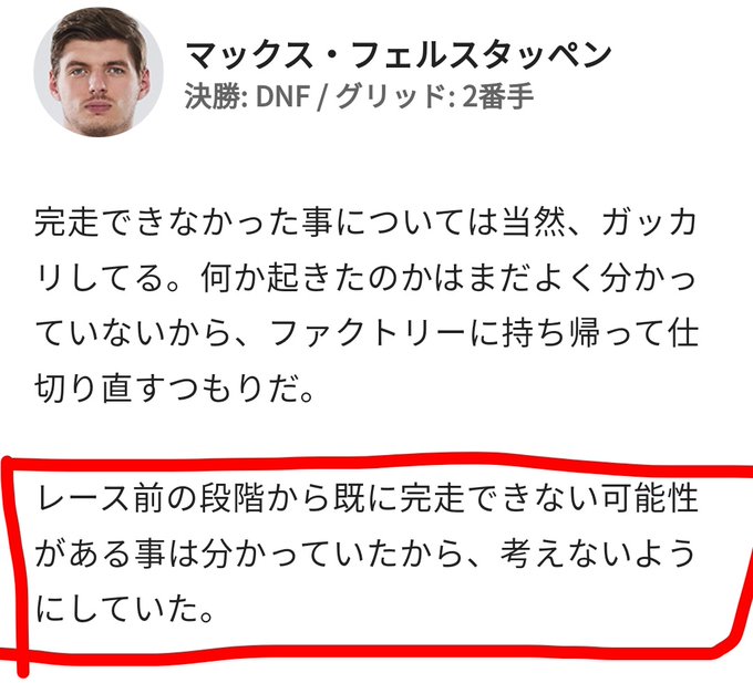 フェルスタッペン、3戦中2回目のリタイア「タイトルを争う上で起きてはならないこと」燃料関連の問題発生か/F1第3戦 / i.f1sokuho.net/news.php?no=15… #F1 #f1jp pic.twitter.com/o0KZNXeNfO