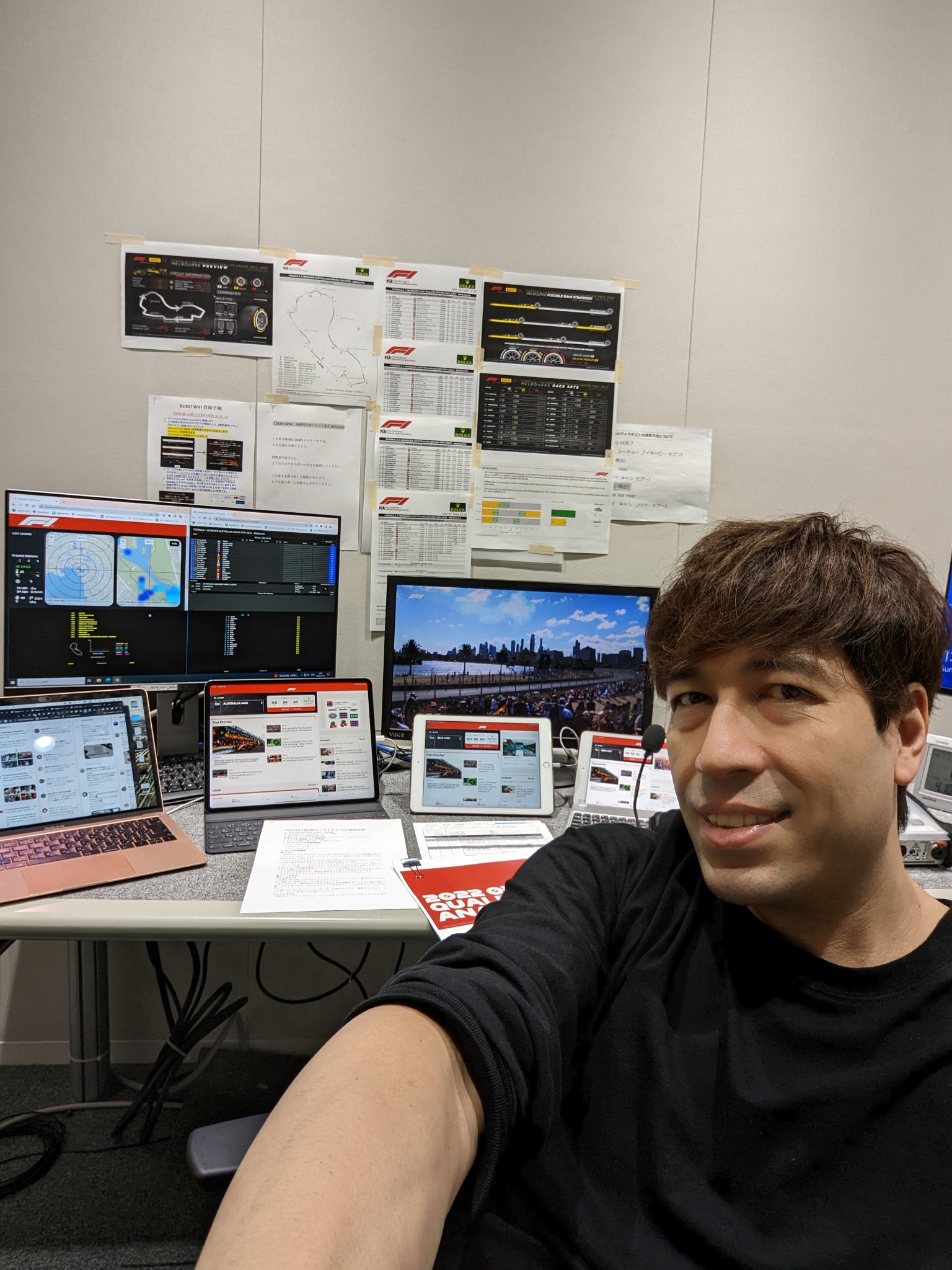 情報を壁に貼って、PCとタブレットを広げて準備OK!13:20〜 @DAZN_JPN #f1 #AustralianGP 決勝実況! @f1 #f1jp #f1dazn dazn.com pic.twitter.com/3AQLscMbwx
