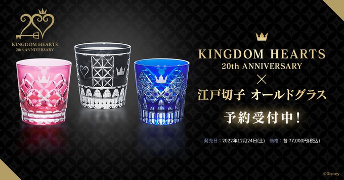 江戸切子協同組合加盟の工房職人と作り上げた、日本の伝統的工芸品「江戸切子」と『キングダム ハーツ』20周年のコラボレーションアイテムが登場!伝統文様をベースにした『キングダム ハーツ』20周年柄を切子加工。専用桐箱、箱にシリアルナンバー付きでお届け。#_KH #KH20th