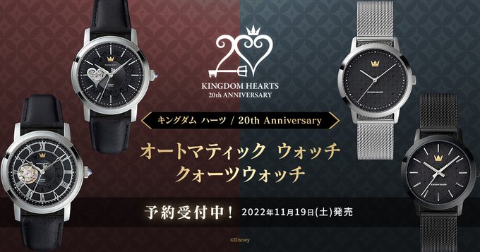 『キングダム ハーツ』20周年を記念して、自動巻き機械式時計とクォーツタイプの腕時計が登場!オートマティック ウォッチは、オープンハート部が”ハート型”と”ラウンド型”の2デザイン。クォーツウォッチは、シルバーモデルとブラックモデルの2カラーです。#_KH #KH20th