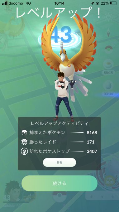 コミュデイの恩恵でレベル43に上がりましたー😊😊