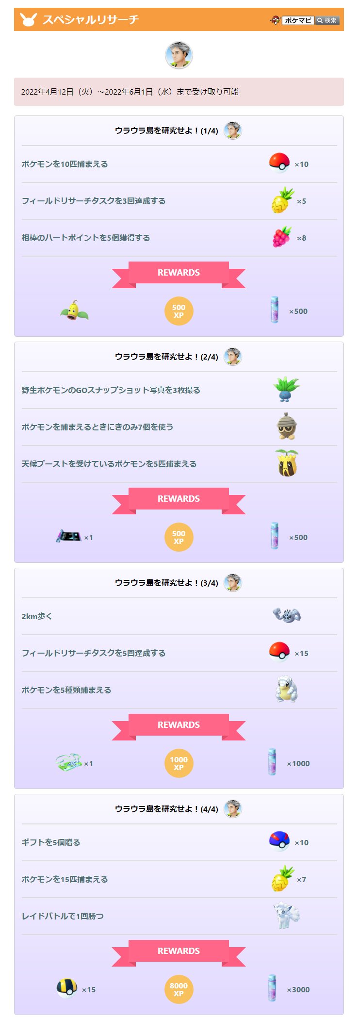 「春イベント」開始に伴って、「ウラウラ島」のスペシャルリサーチが配信されます⭐️
