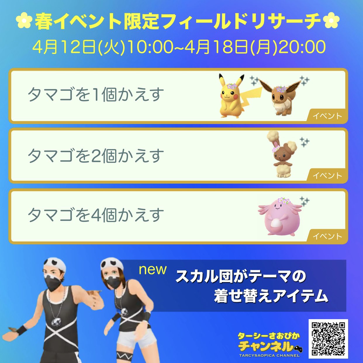 4月12日(火)10:00からいよいよ、ポケモンGOにてイースターイベントが始まります🌼🐰🐾🐣🌷