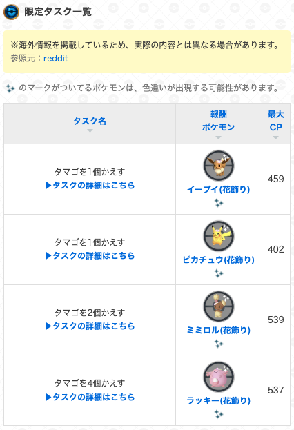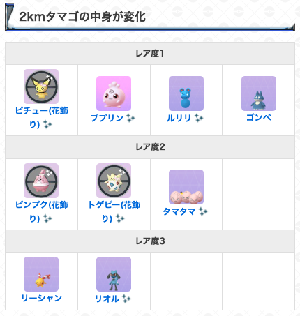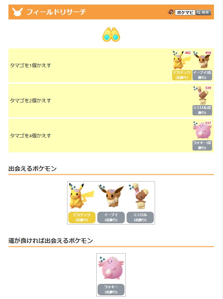 「タマゴをかえす」タスクから、花飾りをつけたピカチュウ、イーブイ、ラッキーと出会うことができます🌸