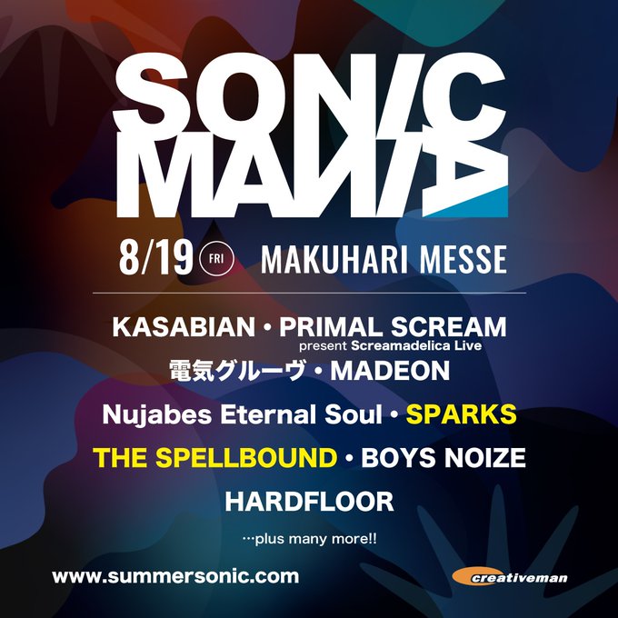 ソニックマニアにはSPARKSとTHE SPELLBOUNDが出演決定。