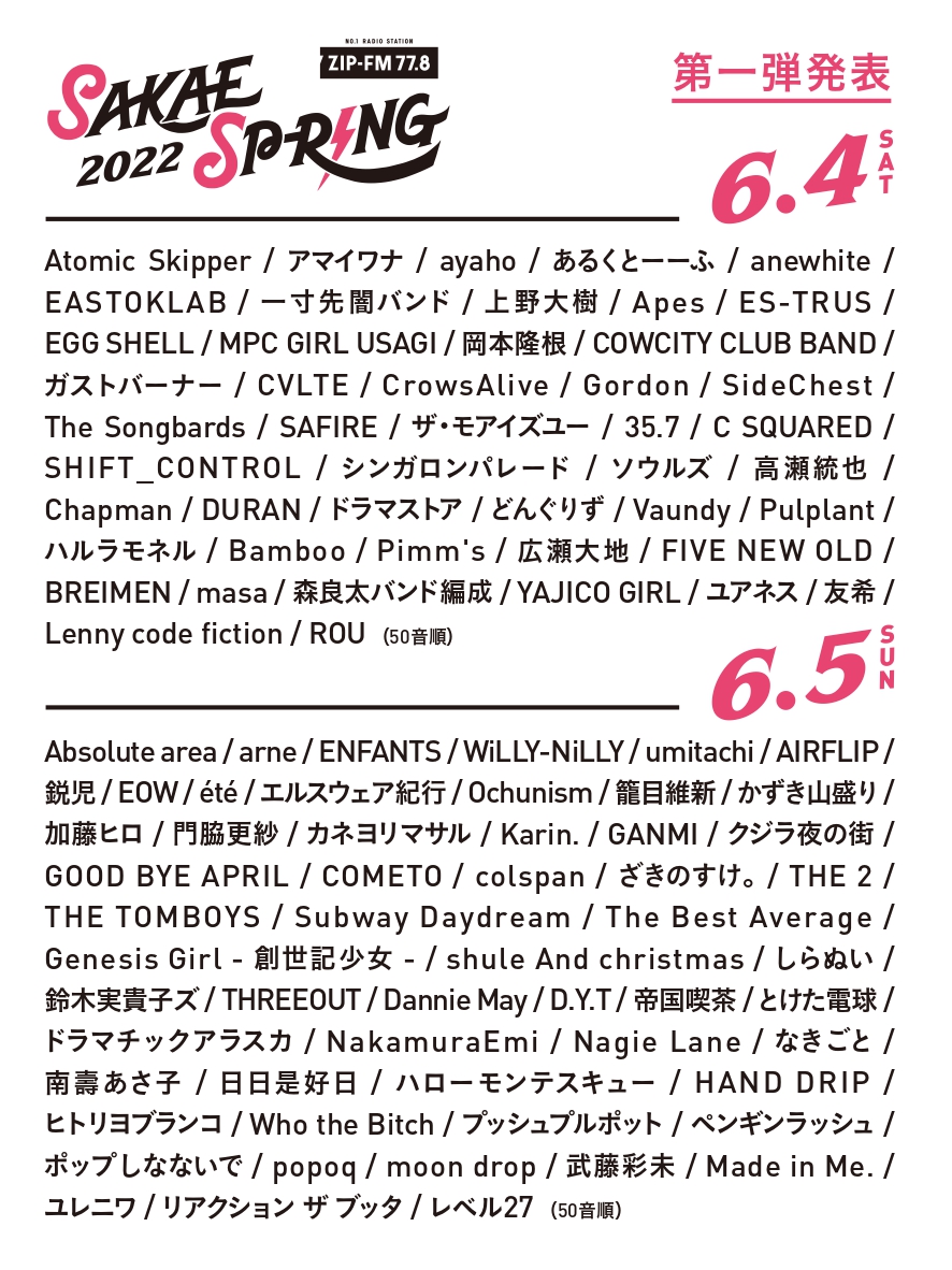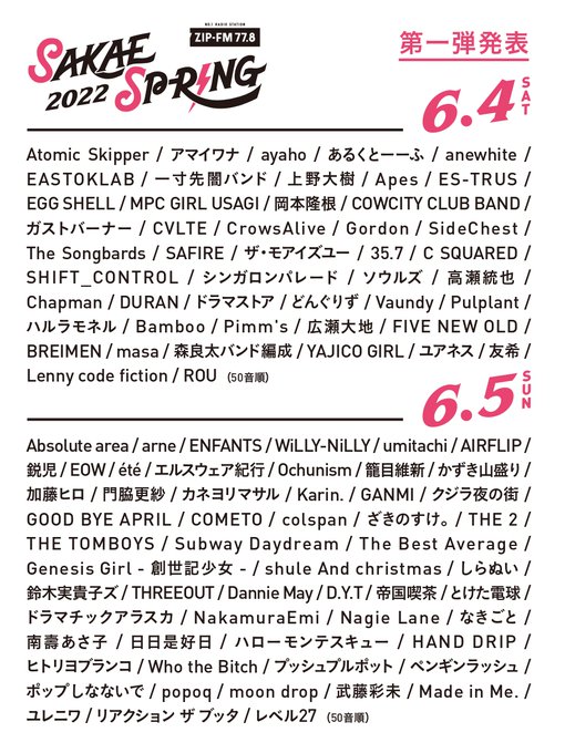 6/4(土)に名古屋・栄一帯のライブハウスで行われる東海地区最大級のライブサーキット「SAKAE SP-RING 2022」(@SAKAE_SPRING)に出演決定🎤