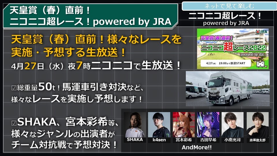 『JRAのニコニコ超レース』に出演致します。