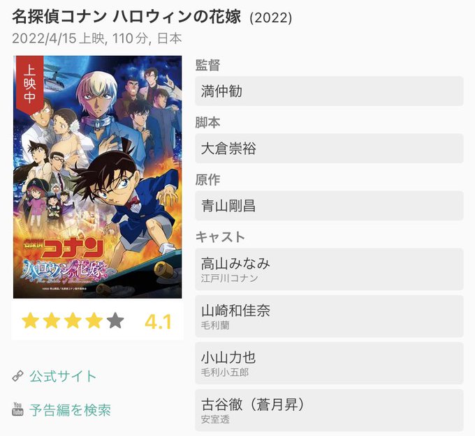 最新作「#名探偵コナン #ハロウィンの花嫁」大ヒット上映中😊😊