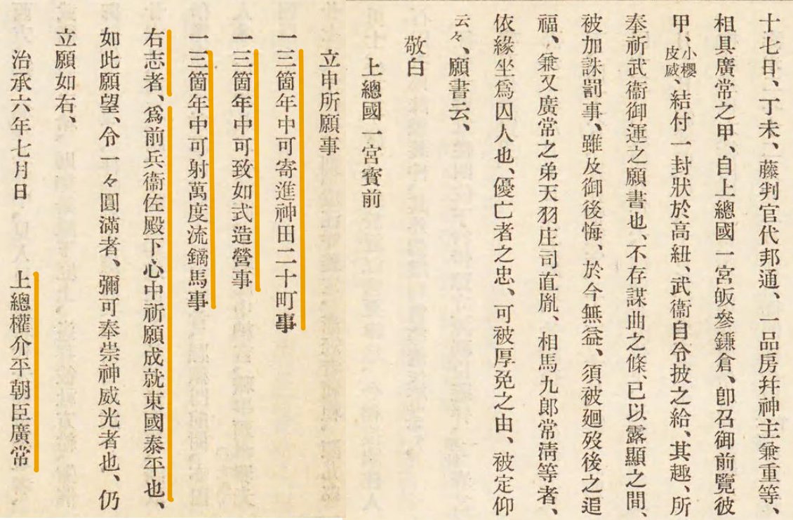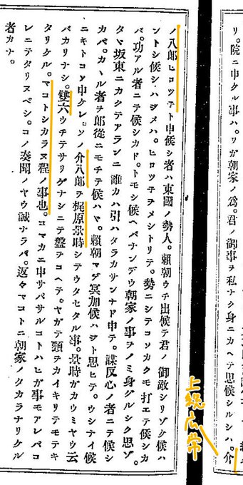 最初の画像が上総広常誅殺の記事(愚管抄巻六)もう一つが、広常が生前、上総国一宮・玉前神社に奉納した甲冑に結び付けられていた願書についての記事(吾妻鏡寿永三年正月17日条)