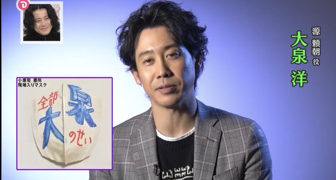 小栗旬がマスクに「全部大泉のせい」と書いていたのをいろんな番宣で聞いてきて「いやいや流石に盛りすぎ~!」と思ってたけどマジで全部大泉のせい #鎌倉殿の13人