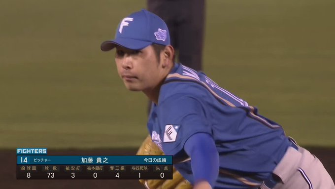 北海道日本ハム #加藤貴之 投手が終盤に突入しても投球数は60と、考えられないペースでイーグルス打線を抑え続ける。
