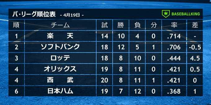📈パ・リーグ順位表📉