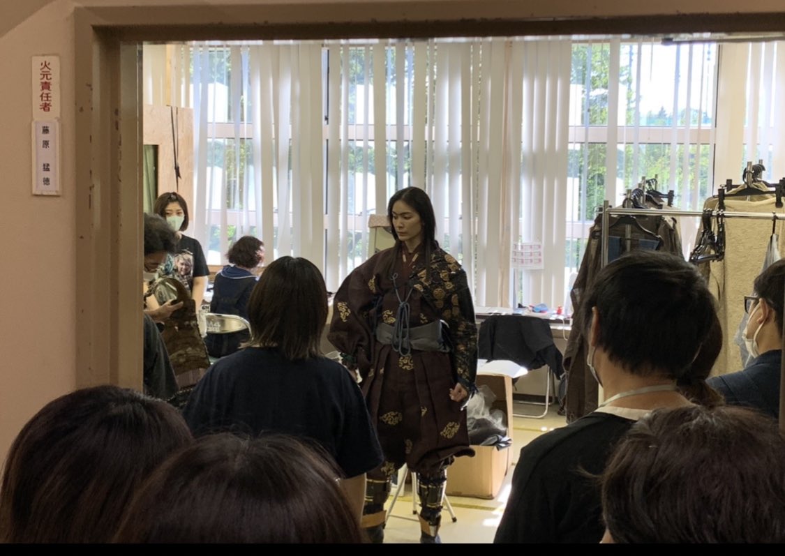 憧れのイラスト嬉しいです。衣装合わせで沢山の方に囲まれ、真剣に眉毛会議が開催されてる中、メンタルが折れそうになりながらもとりあえず記録用に無理矢理笑顔作って残しておいた私と、衣装合わせの様子です。沢山のスタッフの方々と共に役を作っていきました。 pic.twitter.com/oKMgPyi3MX