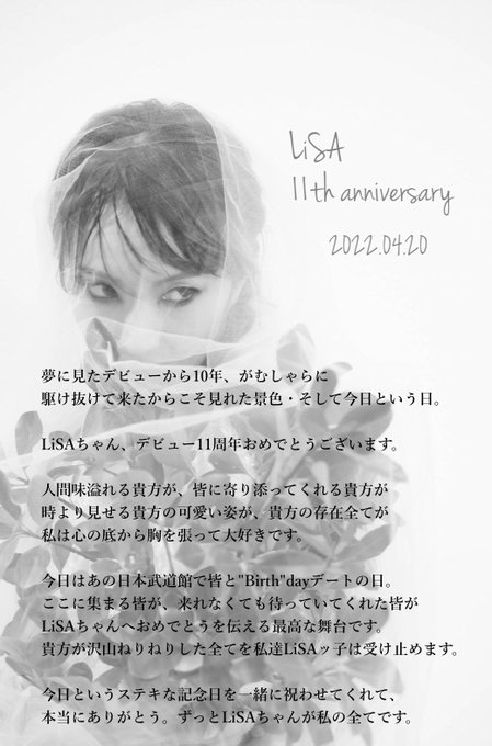LiSAさん、11周年おめでとうございます!
