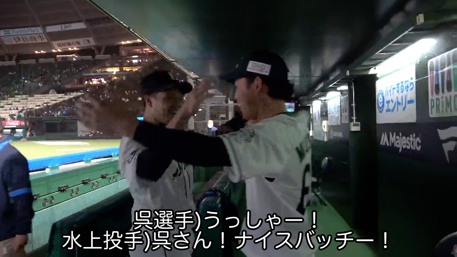 勝利を喜び合う今日のヒーロー #水上由伸 投手と #呉念庭 選手!