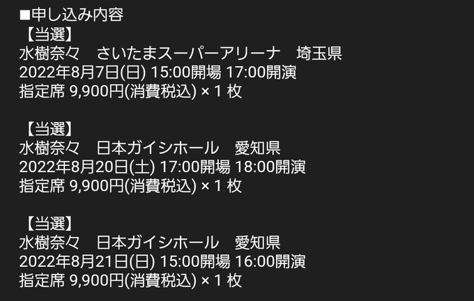 【拡散&入力希望】 水樹奈々 ライブツアー「NANA MIZUKI LIVE HOME 2022」のFC会員先行抽選結果を集計しています(集計結果を随時更新して公開)。下記リンクより抽選結果を入力して下さい。ご協力よろしくお願いします。