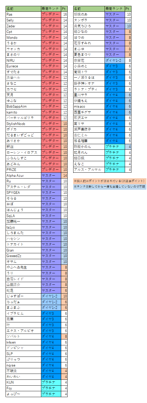 マスターランク。大会出場経験多。オーダー経験もございます😤