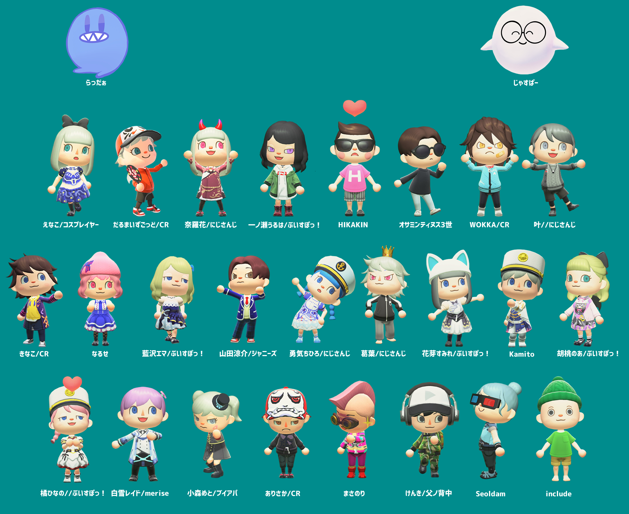 きなこさん、だるまいずごっどさん、うるかさん、奈羅花さん、葛葉さん、ボドカさん、天月さん、まふまふさん