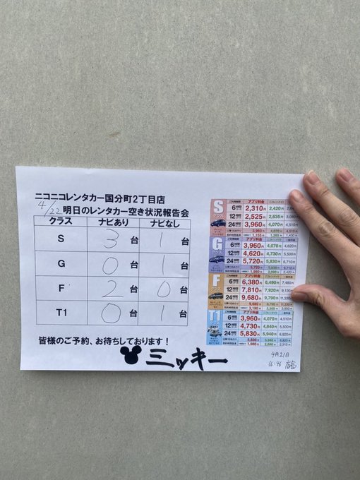 明日の空き状況です🚘↓